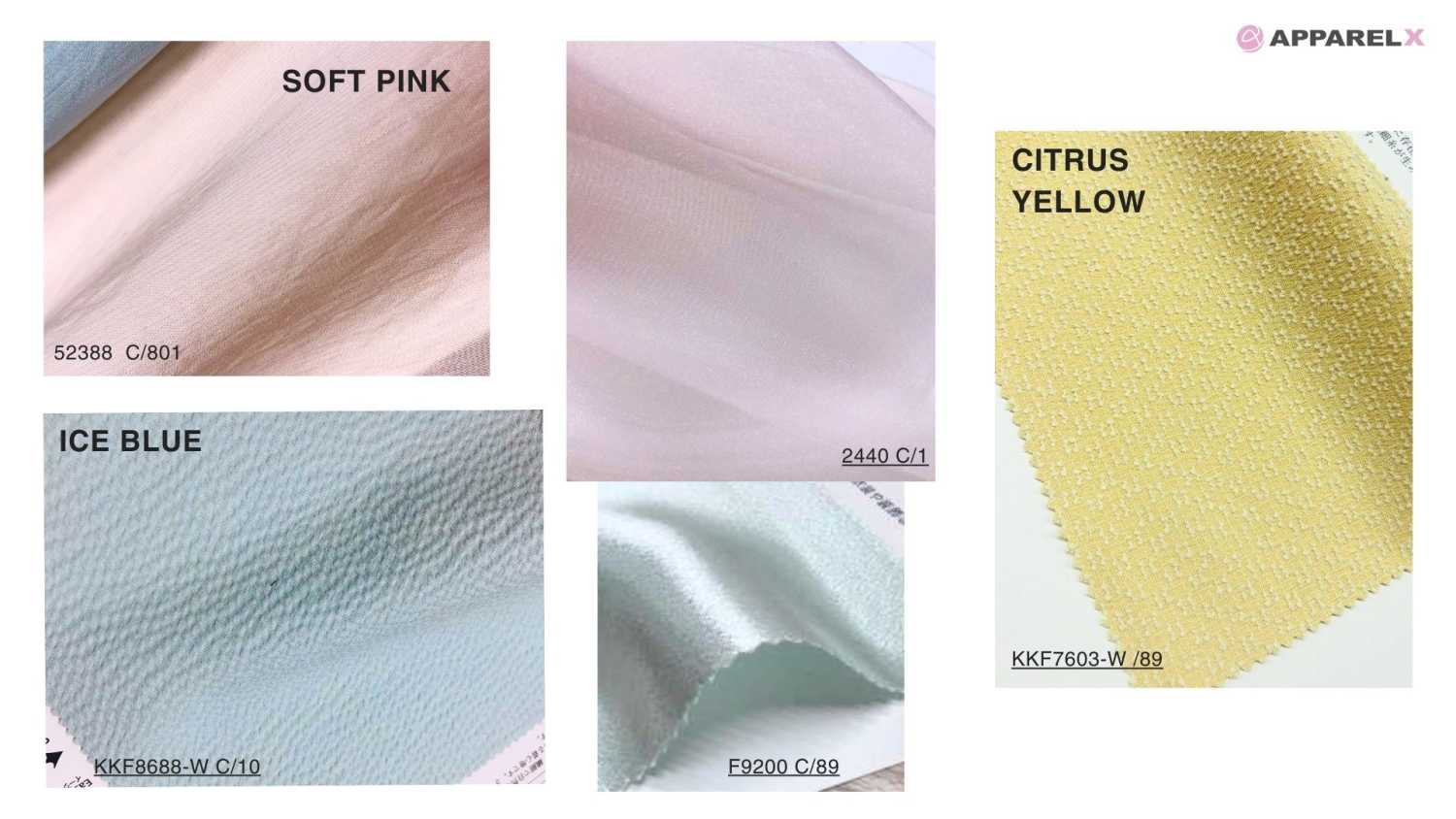 Hemos compilado una perspectiva única de ApparelX sobre las tendencias de color y los materiales populares para la temporada primavera/verano.
