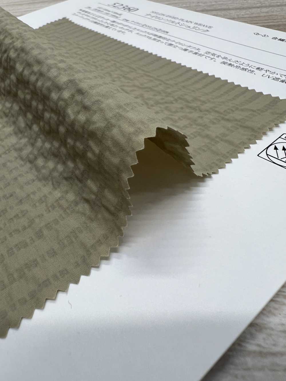 Este tejido tiene una sensación refrescante al tacto y una tasa de bloqueo de rayos UV de más del 80%, y también tiene una apariencia similar al seersucker debido al procesamiento de contracción por sal.