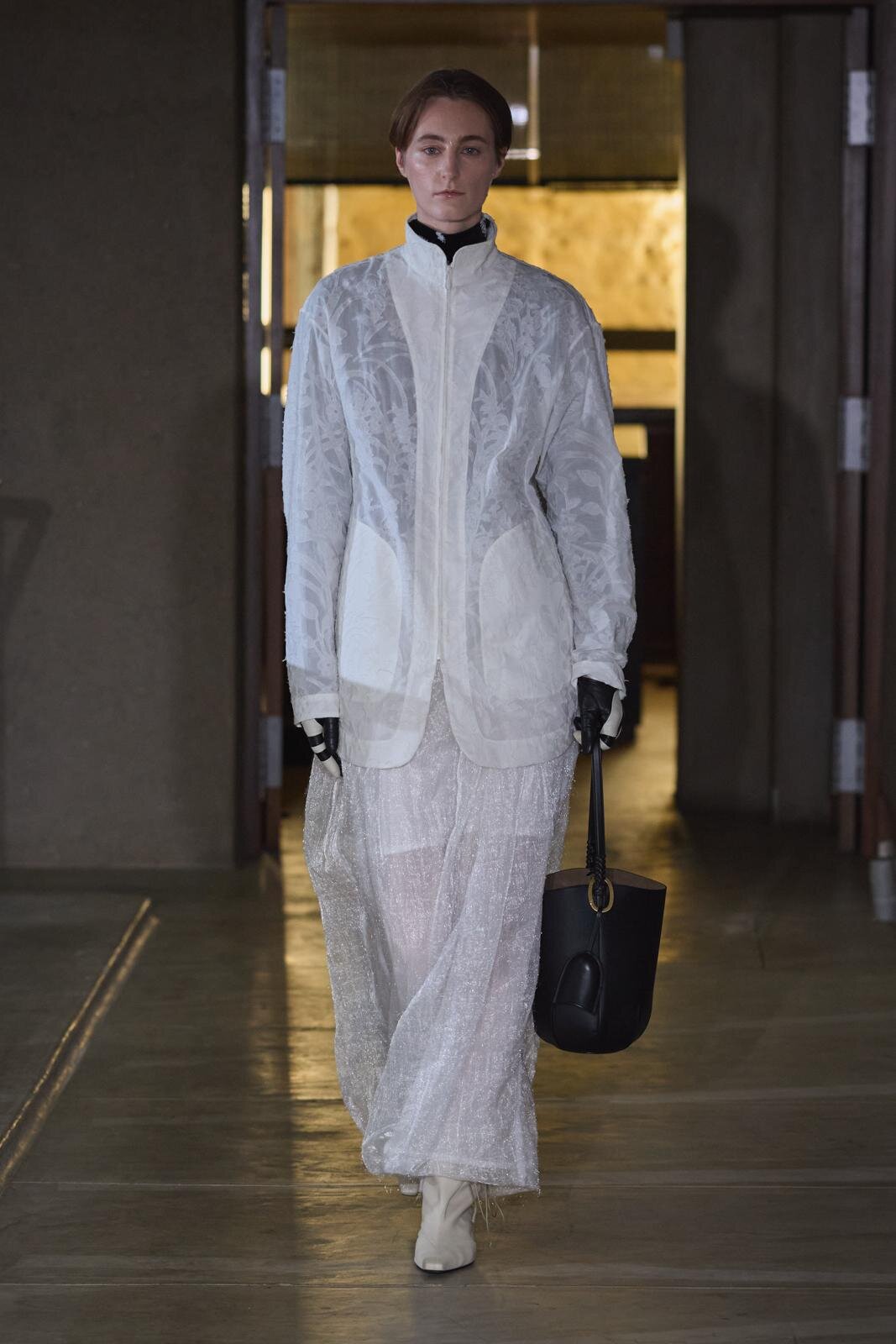 Los delicados motivos botánicos se equilibran con siluetas definidas y un estilo minimalista, creando una apariencia moderna que atenúa el romanticismo.
