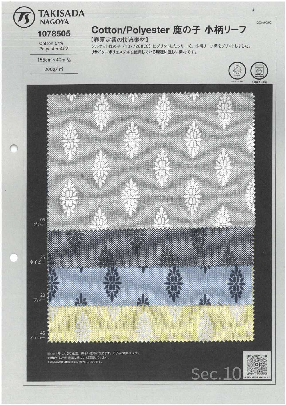 1078505 Algodón/poliéster punto musgo Patrón de hoja pequeña