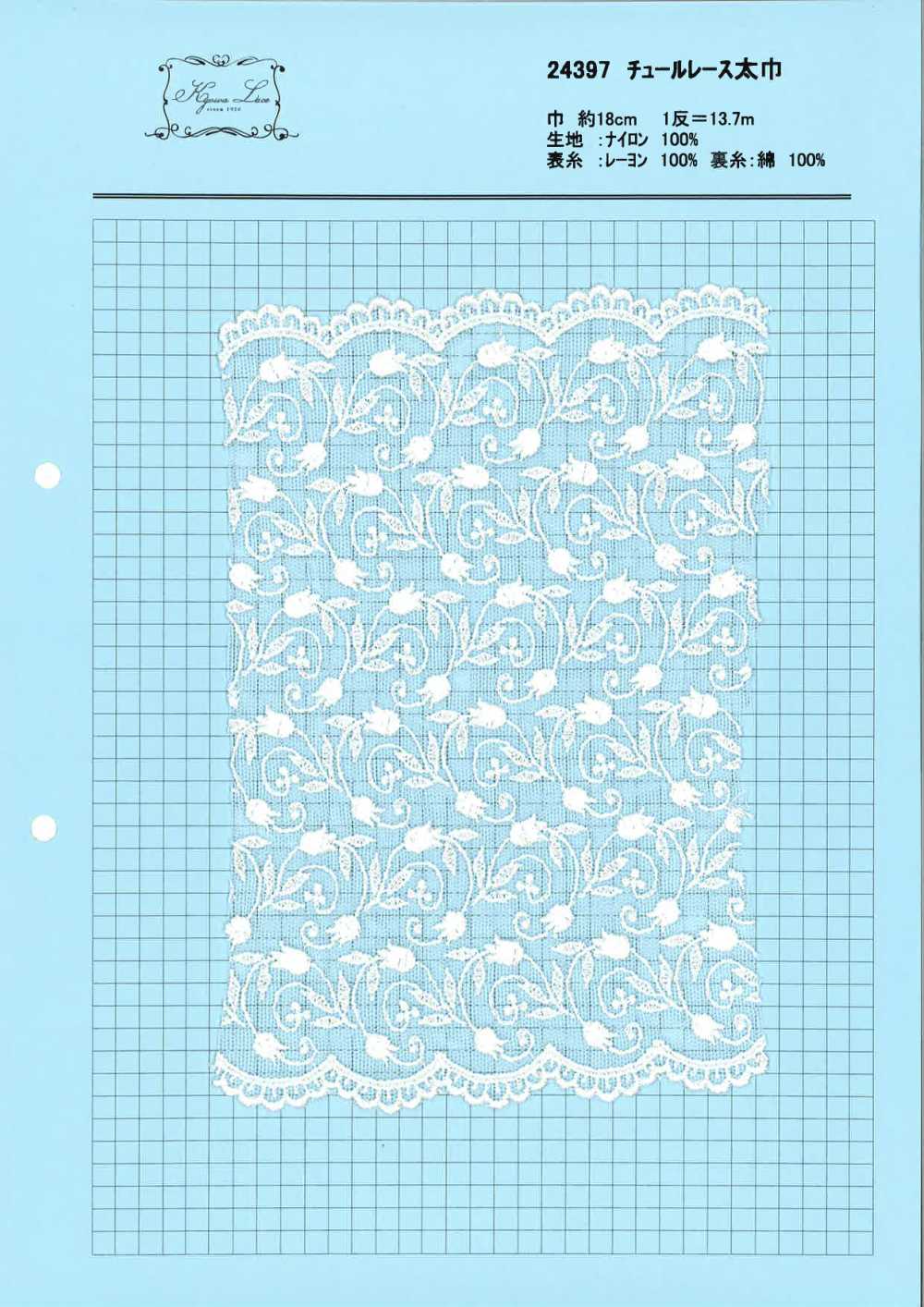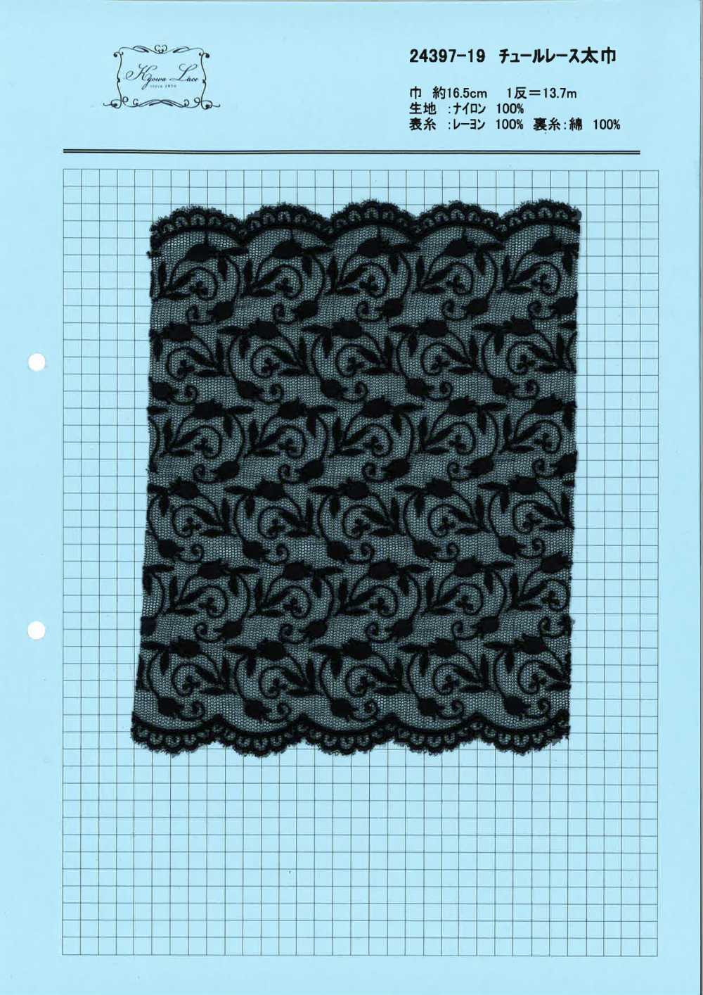 24397 encaje de tul ancho, estampado floral