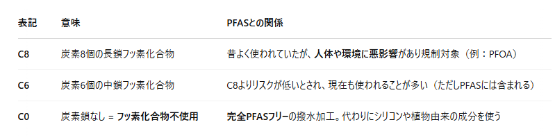 El “tipo C0” que no utiliza PFAS es menos eficaz que los productos convencionales que contienen PFAS (C6 y C8).