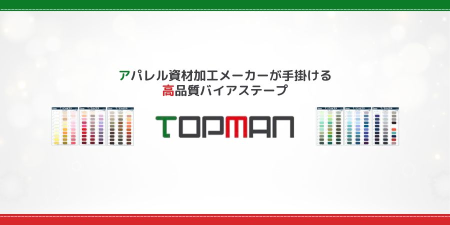 Entre estos, la cinta al bies es el producto principal de Topman Kogyo, y la empresa también maneja muchos otros productos que la diferencian de otras empresas.
