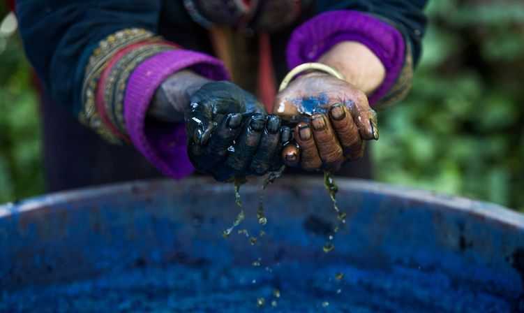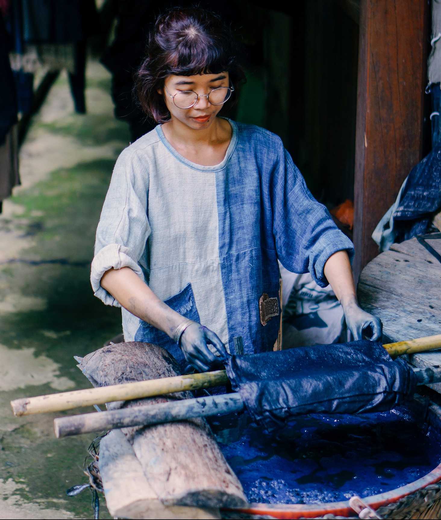 Por supuesto, el teñido índigo no es nuevo. Se dice que el teñido índigo se inventó por primera vez en Perú en el año 6300 a.C. Sin embargo, la mayor parte del tinte índigo que se produce hoy en día es de origen humano y representa varios miles de toneladas cada año. A diferencia del índigo sintético, el índigo natural es un tinte sostenible. Una vez extraídos los pigmentos, los residuos de las plantas se convierten en abono y se utilizan como fertilizante, y el agua se reutiliza para regar los cultivos. En Vietnam, varias minorías étnicas todavía utilizan la técnica del teñido natural del índigo. Atraen a jóvenes que quieren un estilo de vida ecológico.