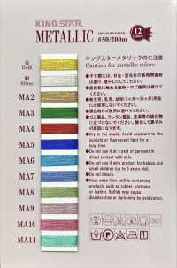 [Notas sobre los colores oro, plata y aluminio] *Evite utilizar en zonas que entren en contacto directo con la piel. *No utilizar en productos para bebés (0 a 36 meses). *Planchar a temperatura máxima de 120ºC y utilizar siempre un paño de prensado. *Por favor evite usar lejía. *Por favor secar a la sombra. *Evite utilizar productos químicos que contengan cloro ya que pueden provocar decoloración. *No permita que el producto entre en contacto con poliuretano, productos de elástico , productos de uretano, cuero u otros elementos que contengan sulfuros, ya que esto puede causar decoloración. *Al limpiar en seco, utilice productos a base de petróleo. *Evite utilizar repelentes de insectos o, si los utiliza, utilice un repelente de insectos para hilo dorado.