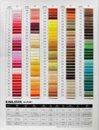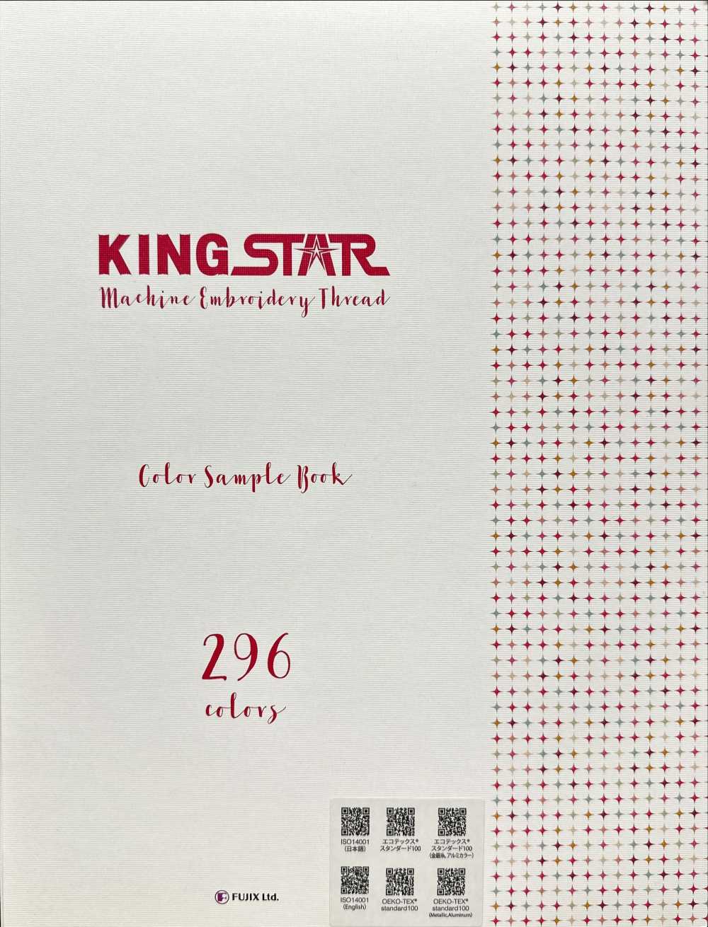 Esta es una tarjeta de muestra del hilo de bordar para máquina de coser doméstica FUJIX KING STAR. También disponemos de muestras de “Hilo de bobina para bordar a máquina de coser King Star” y “King Star Multi-Color”.