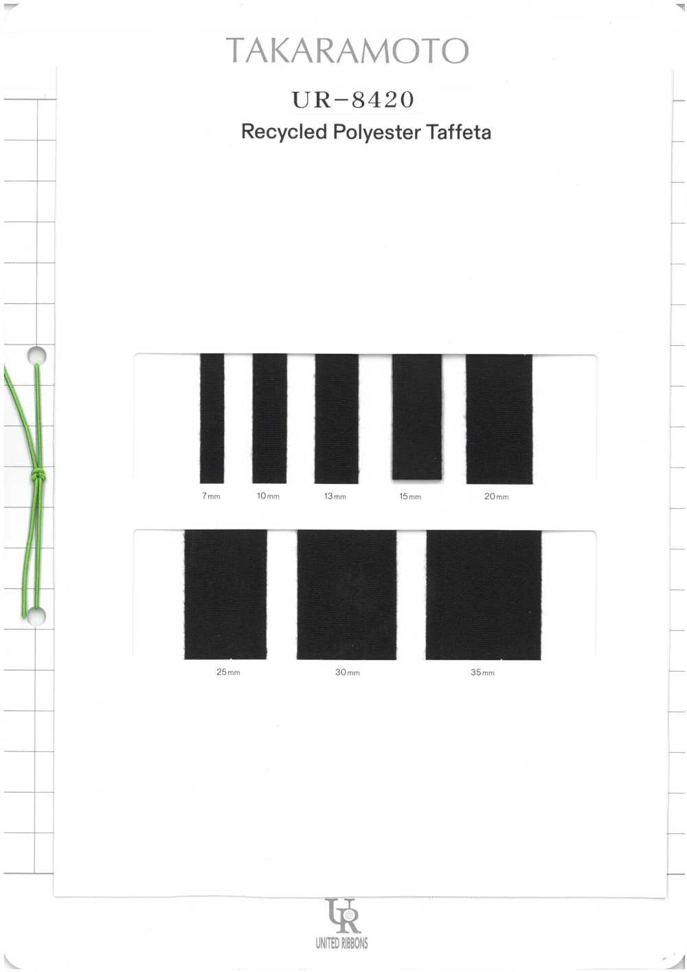Esta es una tarjeta de muestra de UNITED RIBBONS UR-8420 Tafetán Tetron hilado reciclado.