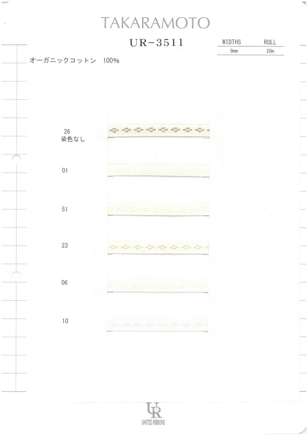 Esta es una tarjeta de muestra de UNITED RIBBONS UR-3511 Jacquard de algodón orgánico.
