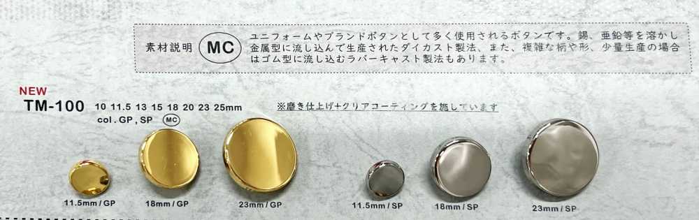 Descripción del material MC: Estos botones se utilizan a menudo como botones de uniforme o de marca. Se fabrican mediante fundición a presión, donde se funde estaño o zinc y se vierte en un molde metálico. Para patrones o formas complejas, o para producción a pequeña escala, también se pueden fabricar mediante fundición de caucho, donde el material se vierte en un molde de elástico .