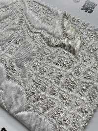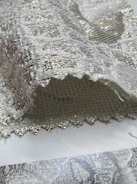 Este hilo jacquard abullonado presenta hilos con purpurina plateada y dorada. Las flores son ligeramente abullonadas, lo que les da un aspecto bonito y voluminoso, mientras que los colores plateado y dorado crean un tejido elegante. También se recomienda para vestuario de escenario, trajes de novia y accesorios.