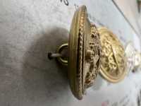 Es un botón redondo de latón con una marca de emblema. El diseño sofisticado irradia una sensación de lujo.