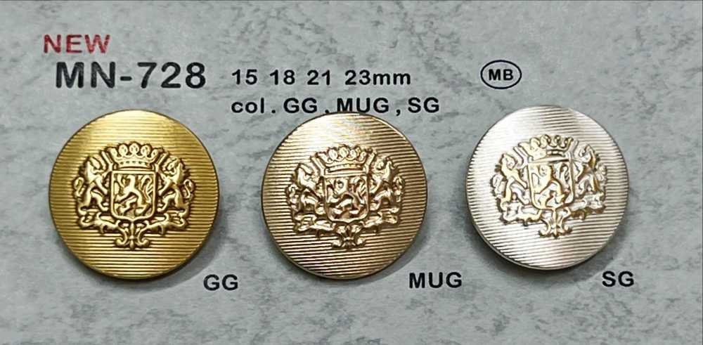 Descripción del material MB: Este botón se usa frecuentemente en uniformes escolares y blazers azul marino. Se fabrica prensando y cortando una placa de latón, y luego se cubre y cierra la parte delantera y trasera del botón. El interior es hueco, lo que le da un acabado ligero.