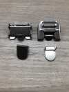 Disponemos de una amplia variedad de ganchos de metal y plástico, incluyendo hebillas para cinturones y topes para sujetar cordones o ajustar su longitud. También tenemos ganchos que se pueden usar no solo para ropa, sino también para bolsos.